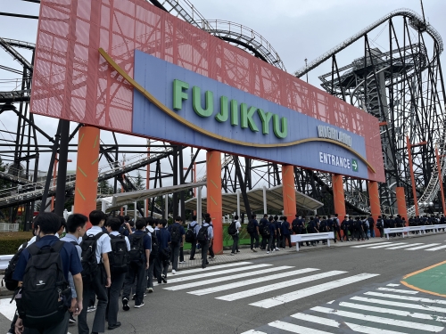 高校1年生の総合学習の一環として、「テーマパーク(アミューズメントパーク)のブランディングとマーケティング比較研究」をテーマに、富士急ハイランドでフィールドワークを実施しました。