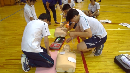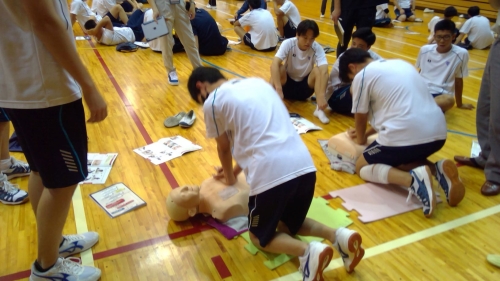 2025/10/02 高校生活 Tweet 高校3年生は藤沢市消防署の方の指導のもと、救急救命講習を行いました。暑さの残るなか、みな真剣に取り組んでおり、心臓マッサージや人工呼吸、またAEDの使い方などを実技を行いながら学びました。 Tweet