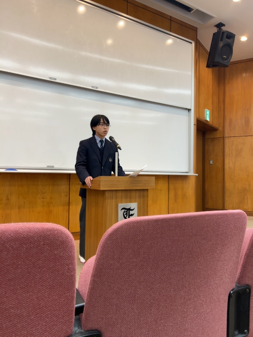 2025/11/01 高校生活 Tweet 高校生の弁論大会の予選が行われました。本校の弁論大会は提出者の原稿にまず点数をつけ、その得点の高かった生徒に対して予選大会を実施しております。本年はとりわけ出場者のレベルも高く、点数をつけるのに難儀したという先生方の声も多く聞かれました。今回の予選は15人が出場し、その上位8人が決勝大会に進出することとなりました。決勝では高校全生徒の前で発表し、その中で点数をつけることになります。生徒たちのブラッシュアップに期待がかかります。 Tweet