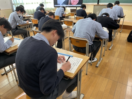 高校1年生を対象とした学林の一環として、「般若心経を写す・唱える」行事を実施いたしました。今回は、時宗総本山 遊行寺 法務執事であられる梅谷泰樹先生より、写経の意義や作法についてご指導をいただきました。