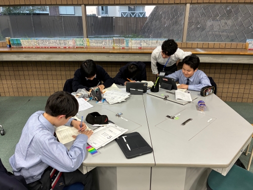話し合いながら学べるスペースでは、友達同士で問題を出し合ったり、分からないところを教え合ったりする姿が見られます。