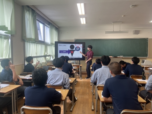いわゆる「文学的文章」と「古典」を包摂した分野を扱う「言語文化」の授業の一幕です。高校一年生は今学期、文学的文章の学習の際に芥川龍之介の『羅生門』を取り扱いました。『羅生門』は最後の場面の描写を活用した発展学習が多くありますが、ここでは下人の堕落のプロセスを振り返りつつ、その過程に内的要因と外的要因があることを突き止めた上で、その理解の枠組みを使って他の作品の読解と比較に焦点を当てた授業を行いました。難しいテーマではありますが、昨今のサブカルチャーの文脈でよく見られる身近な言葉を用い、比較対象にTVアニメを用いることで学びの敷居を下げ、かつ学んだ枠組みを他に応用させやすくなっています。