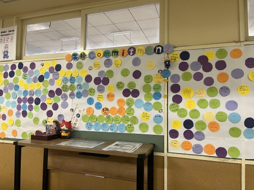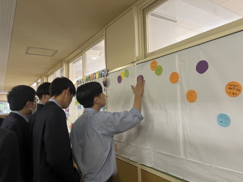 1月23日に校内受験で行われる実用英語技能検定に向けて、高校1年生~2年生が目標を宣言をしました。写真は、各々が書いた目標宣言を持って職員室前に貼りに来る生徒たちの様子です。本校では第3回の英検は原則全員受験(準1級以上は除く)となっており、今年度も多くの生徒が挑戦します。11月末には英検について知るための「英検講座」が放課後に開かれ、高校1年生が参加しました。また1月には任意参加の校内勉強合宿で、英検対策の授業を受講することができます。自分で宣言した目標を達成できるよう、十分に対策をして試験に望み、合格を勝ち取ってもらいたいと願います。