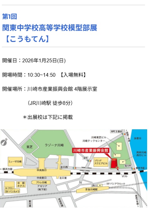 模型作成に興味のある小学生、中学生は会場にて、本校生徒の力作をご覧ください。