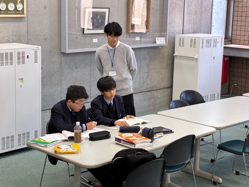 来週火曜日から始まる学年末試験に向けて、校内では学習に励む生徒たちの姿が多く見られます。残念ながら高校1年生、2年生はインフルエンザの罹患者が増加し、学年閉鎖となり自宅学習となりましたが、その分、中学生が校内で真剣に学習に取り組む姿を見せてくれています。本日も放課後の教室や自習スペースでは、現役大学生に教わりながら問題集を広げて復習に取り組む生徒や、友人同士で教え合いながら理解を深める姿が見られました。