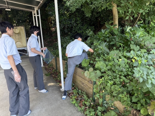 (遊行塾担当より)昨年北海道で野草を他の野草と間違えて摂取して死亡したニュースがありました。小学校の頃に色々な虫や野草を食べたことがある生徒にとって『食べてもいいか』を食用としての知識、犯罪(盗む)など道徳的視点で学ぶことが出来る素晴らしい機会だと思います。また、生徒の五感を刺激するところも魅力の1つです。
