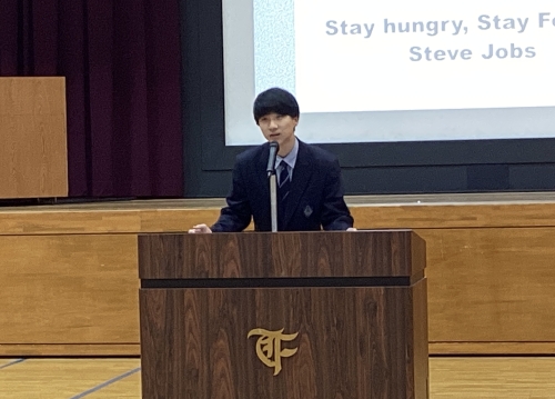 3年生の堂々たるスピーチに、全校生徒が引き込まれていました。