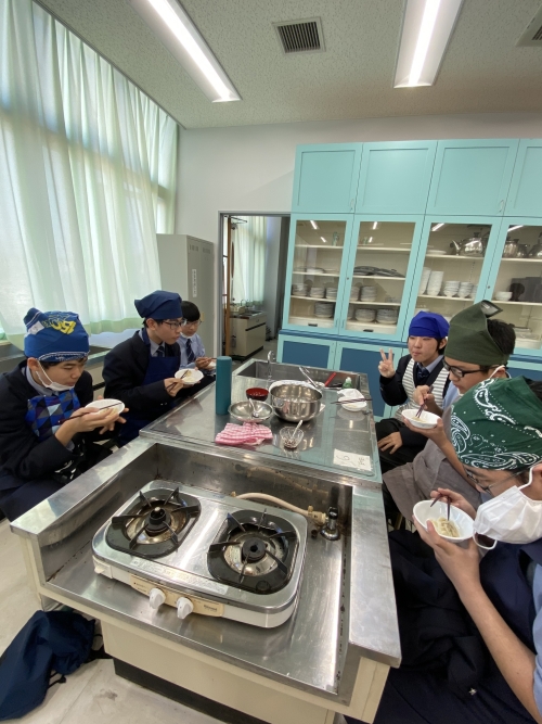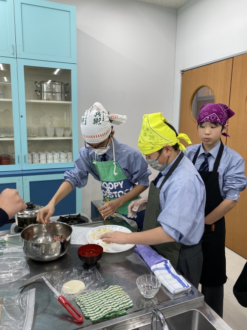 メニューは水餃子。前の週にデモンストレーションを行いましたので、調理も片付けもスムーズに手際よくできました。みんなでお喋りしながら餃子を包む様子は大変微笑ましく、教師の私にとっても楽しい時間となりました。この体験がみんなの生きる力につながるよう願っています。