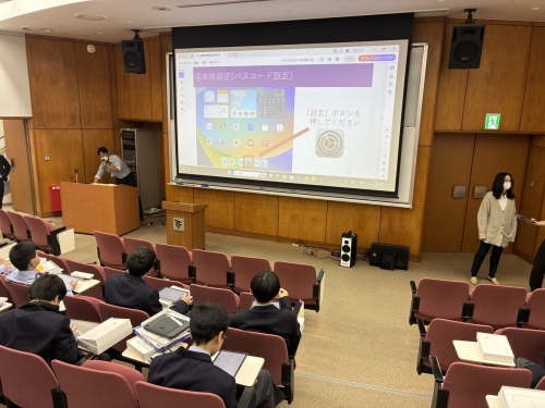 2026/04/13 中学生活 Tweet 中学1年生向けにタブレットの配付を行いました。本校では教材としてipadを1人1台配付し、利用しています。また、タブレットを配付するにあたって、その利用に関わるルールなどの説明もいたしました。今後の授業や探究活動の中で活用していきましょう。 Tweet