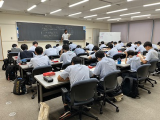 晴天に恵まれた青空の下、海を一望できる素晴らしい環境で、3泊4日の勉強合宿が始まりました。生徒たちは1学期の反省を思い返しながら、この期間を有意義に過ごして欲しいと願っています。